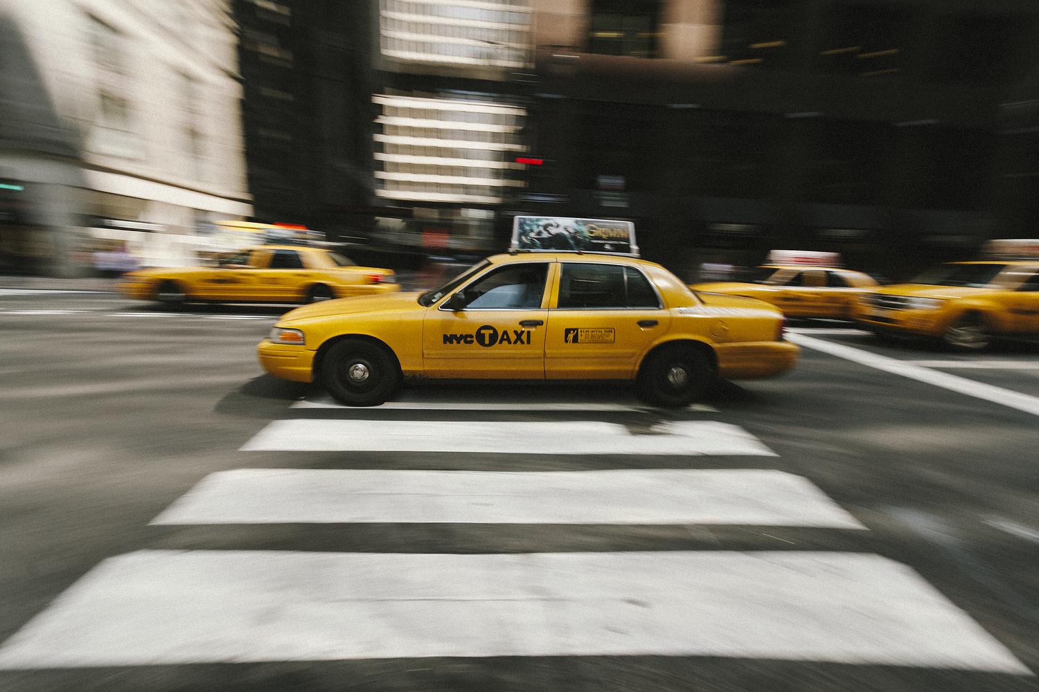 Dive into the dynamic energy of New York City with this captivating photograph. Witness a fleet of yellow taxis in motion, creating a mesmerizing blur that captures the bustling rhythm of urban life. Amidst the movement, a central taxi emerges sharply, symbolizing the individuality within the city's vibrant flow. Explore the essence of NYC's iconic taxis and metropolitan vitality.